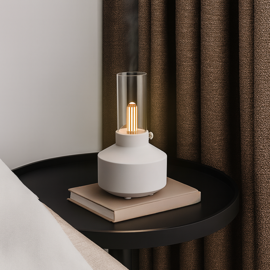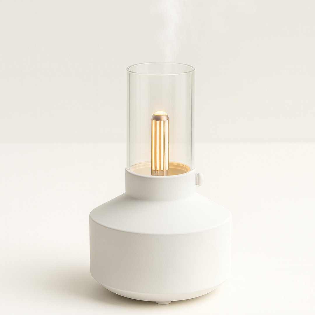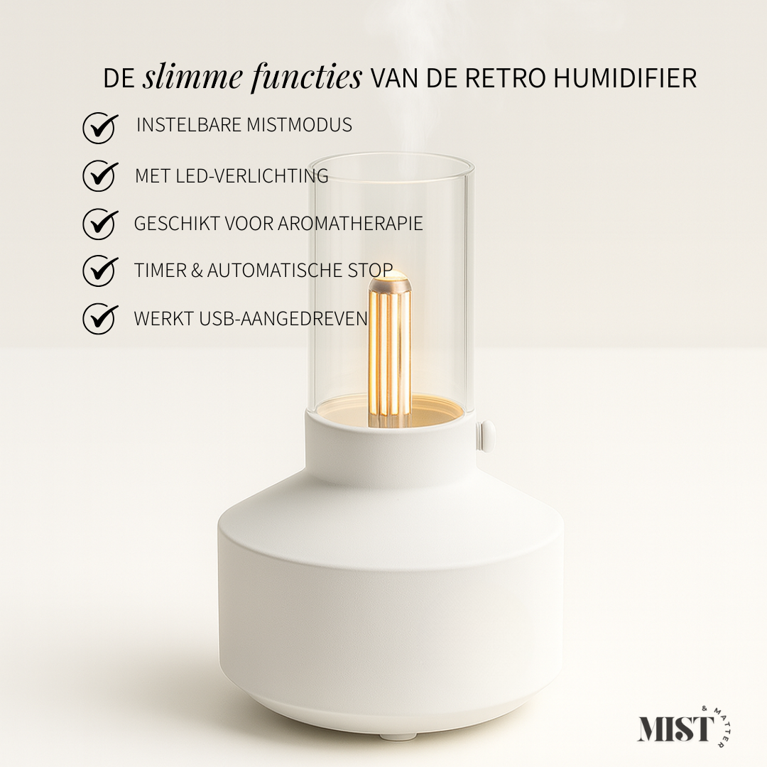 Breng sfeer en welzijn in huis met de Retro Humidifier. Geïnspireerd door een tafellamp combineert hij een stijlvol design met twee nevelstanden die zorgen voor hydratatie, ontspanning en een betere nachtrust.